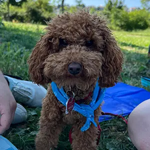 Seit Juli 2024 begleitet mich bei meiner Arbeit als Pfarrerin auch regelmäßig meine Zwergpudelhündin Emma.